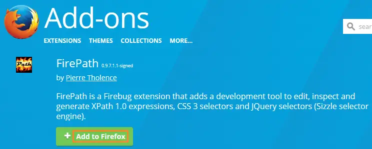 2- Search for the FirePath plugin and click on the “Add to Firefox” button.