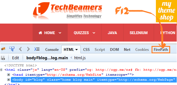 4- Now, you can give the “F12” command and check the “FirePath” option got added in the Firebug’s toolbar.