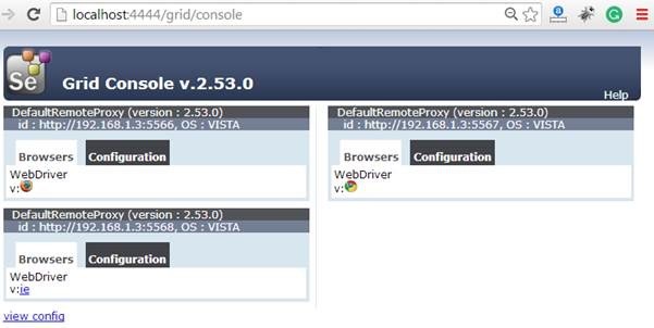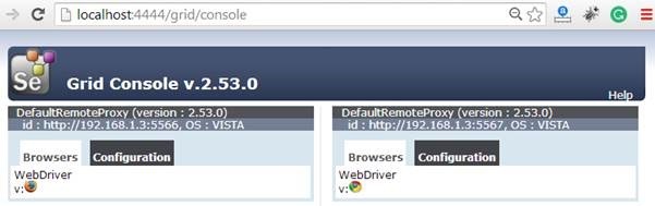 http://localhost:4444/grid/register -port 5556 -browser browserName=firefox,maxInstances=3- Maximum Instance can be verified under the configuration tab.