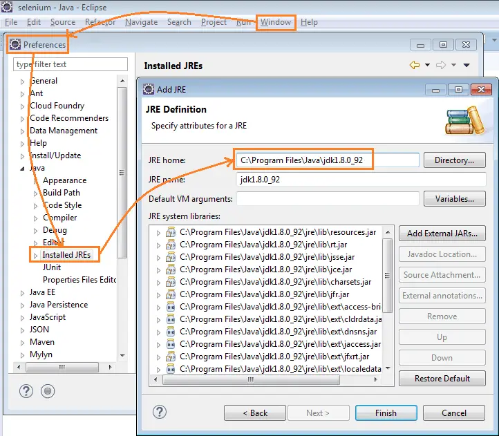 5. Also, you must make sure that the Installed JRE setting is correctly pointing to a JDK path on your system. You can change it from the Preferences window.